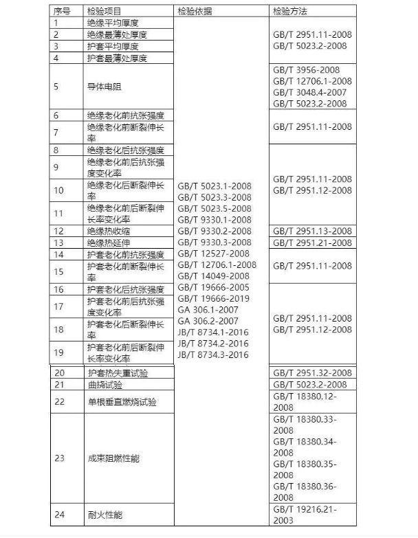 2020年电线电缆产品检验项目、依据及方法